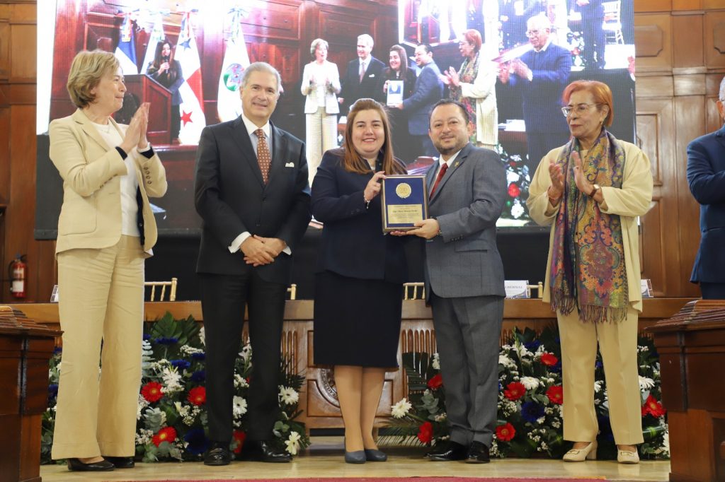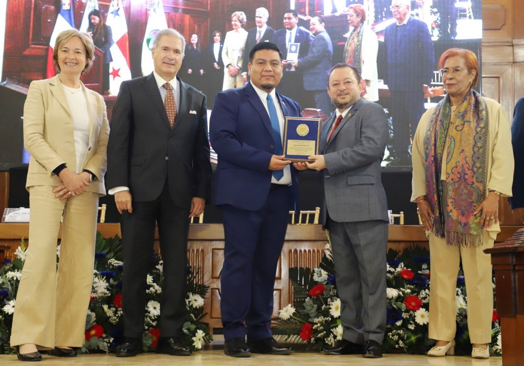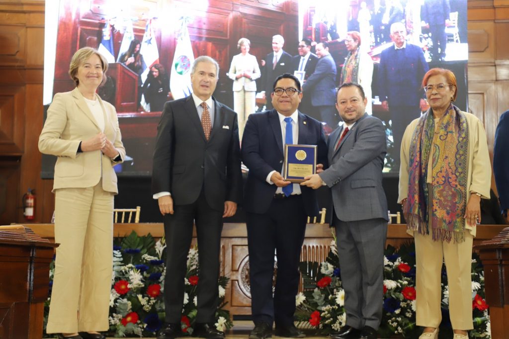 La comisión técnica que acompañó la acreditación otorgó un reconocimiento al rector M.A. Walter Mazariegos, en agradecimiento por su acompañamiento, liderazgo y respaldo institucional, así como por compartir la visión que permitió avanzar con éxito en esta fase de acreditación internacional.